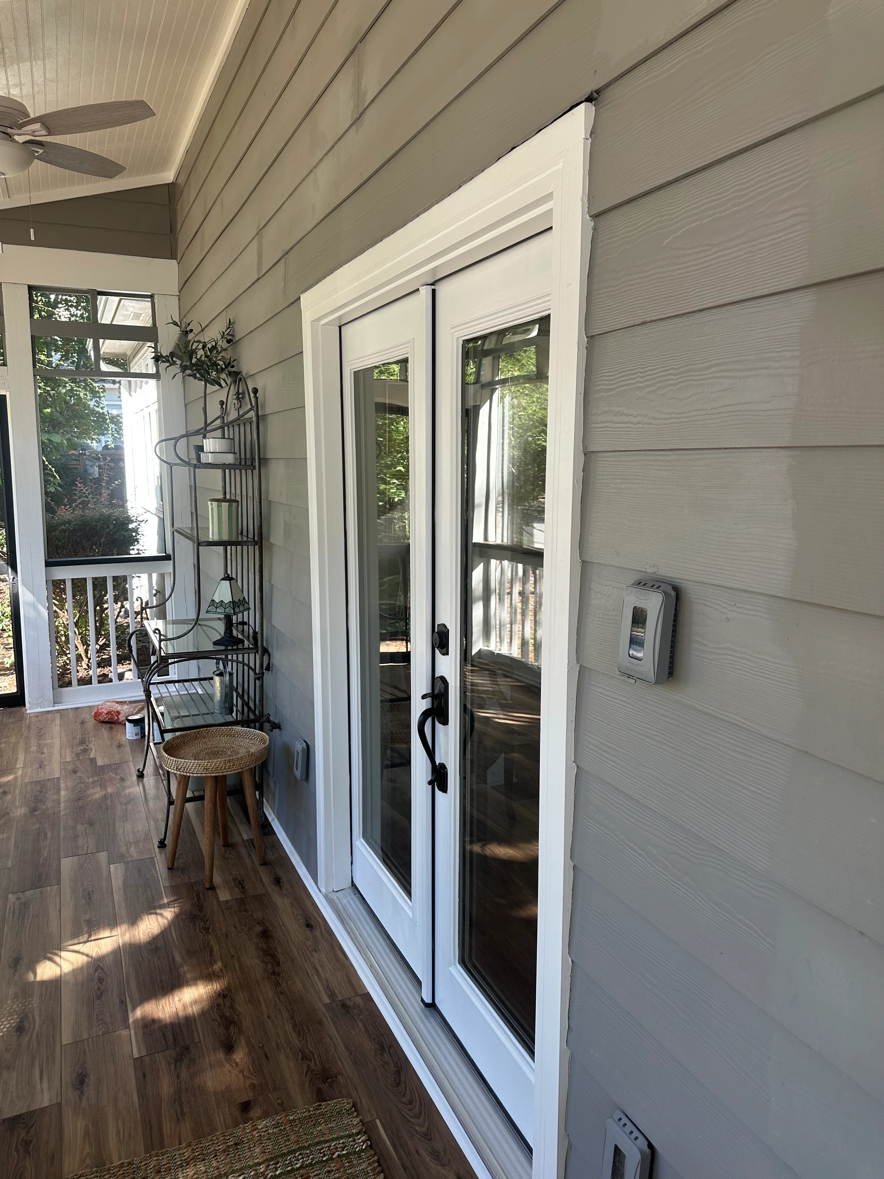 - Large french doors allow the family to have easy fresh air while keeping out the wildlife.